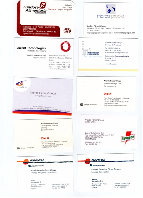 Viendo las tarjetas de los puestos que he ocupado ¿ Quién podría decir que es «lo mío»?. Y eso sin tener en cuenta que soy químico agrícola